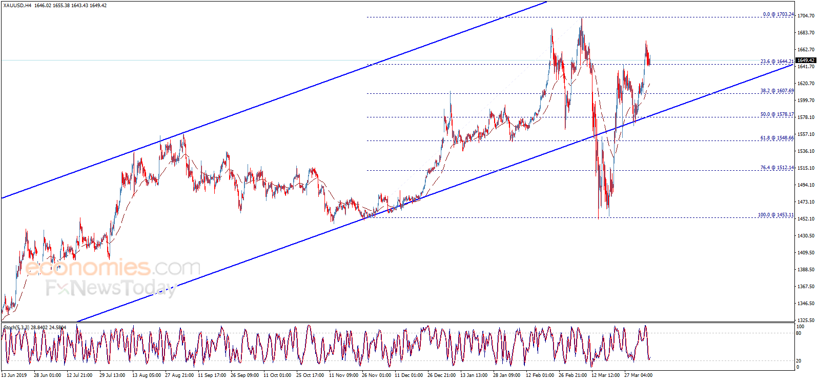 Economies.com在文章中写道,金价维持在1644.20美元/盎司上方进行整固。从4小时图来看,随机指标开始产生提供正面信号,目前等待这一因素推动金价继续看涨趋势,下一主要目标位于1703.25美元/盎司。
