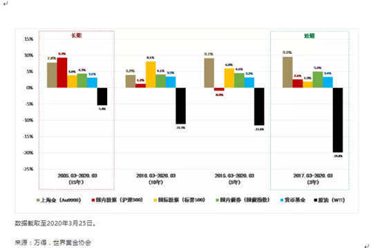 另外黄金的一大作用是规避真正的尾部风险。怎么讲?黄金的作用往往是在危机显现。而我们的投资者在市场相对平稳,没有重大风险的时候觉得买黄金不赚钱,干脆就把黄金卖了。等到真正出现风险的时候,手里又没有黄金了,或者是无奈高位接盘。这样的投资者并没有真正运用到黄金分散风险和保值的功能, 而只是把黄金当做一个短期的投机对象。短期的投机也不是不可以,只是影响黄金价格的因素很复杂,可能会很难判断。但是拉到中长期来看黄金的回报是很独特的。大家可以看一下世界黄金协会的研究资料,把主要资产类别在过去一年、三年、五年甚至15年的表现拿出来对比,会发现黄金的实际回报率很多时候是排在前几位的。