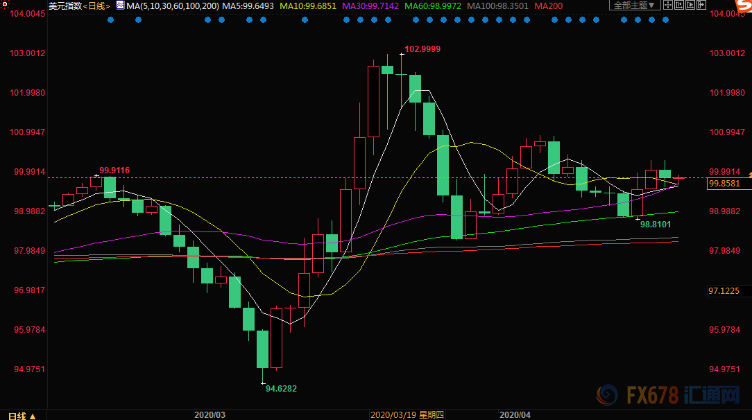 上周五美元在获利回吐中收窄周涨幅,有关美国经济可能分阶段重新开放的前景和有关抗疫药物可能有效的报道刺激市场乐观情绪。衡量美元兑G10货币表现的彭博美元即期汇率指数下跌0.5%, 报1249.3。