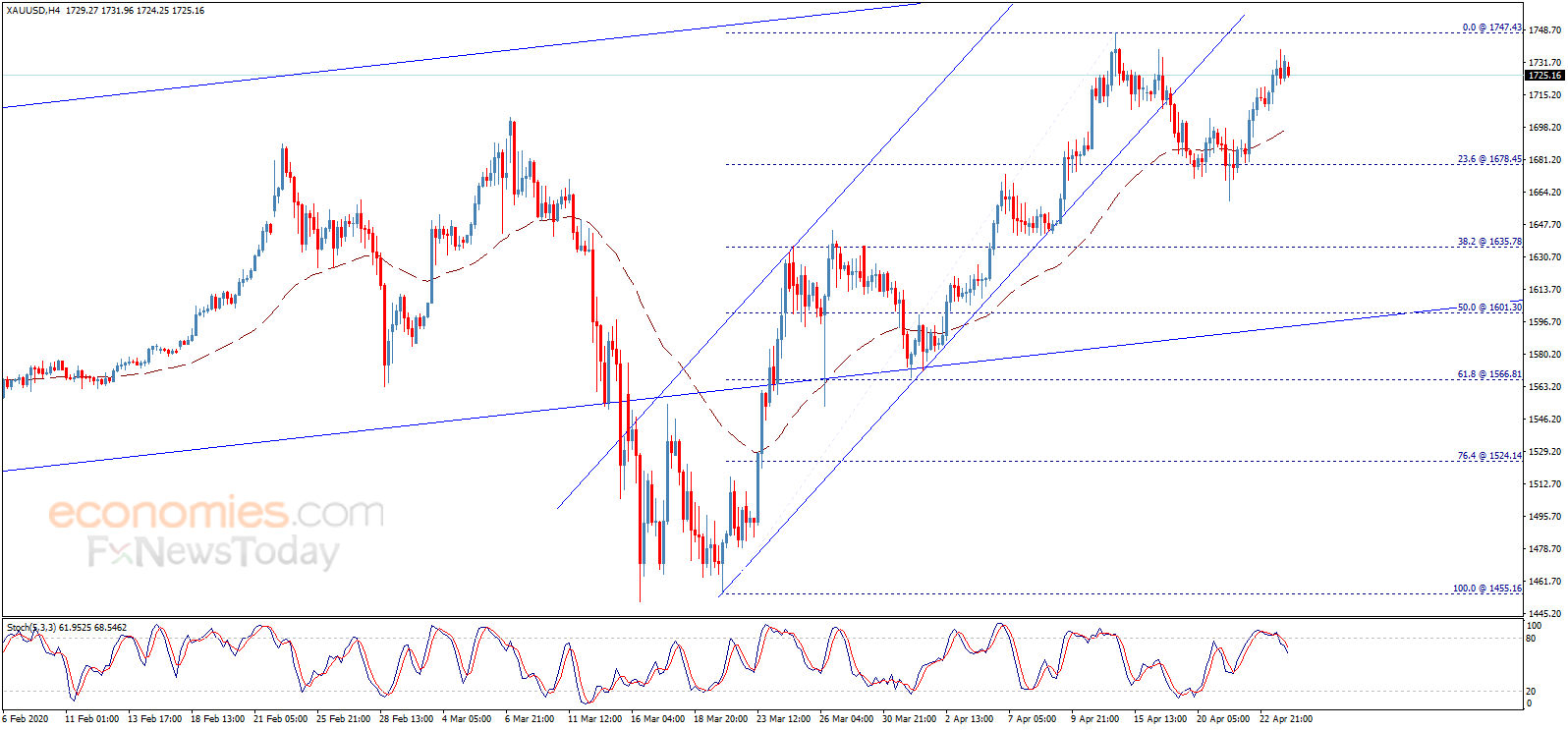 根据Economies.com,假如金价突破1747.43美元/盎司,后市可能还有超过30美元的大涨空间。