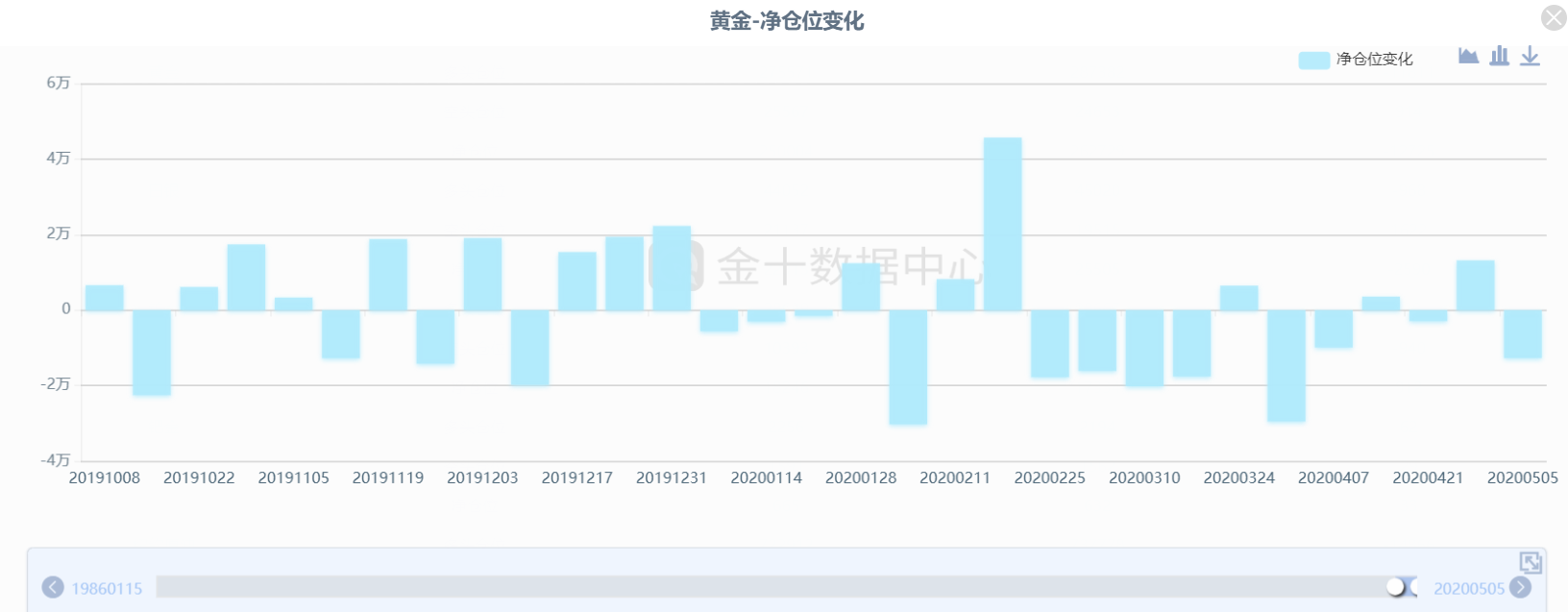 根据CFTC持仓报告,截止至4月29日至5月5日当周:投机者持有的黄金投机性净多头减少12725手,显示看涨情绪有所降温。