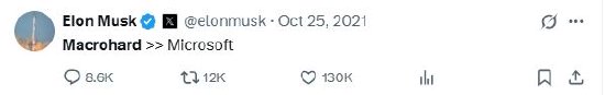 而早在2021年,他发文调侃“Macrohard Microsoft(微软)”。据报道,马斯克与微软创始人比尔·盖茨不和,“巨硬”则是对标微软公司名称。